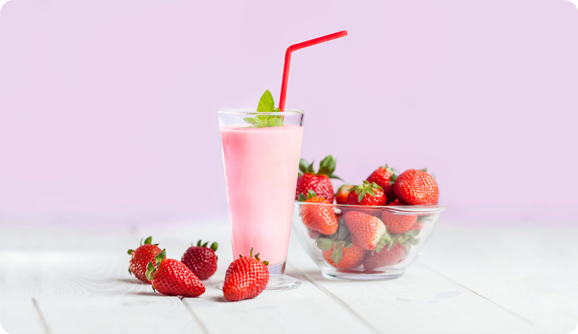 1. Licúa el concentrado sabor fresa, la leche, el yogurt, la avena y los hielos. 2. Sirve en un vaso y decora con las hojas de menta.